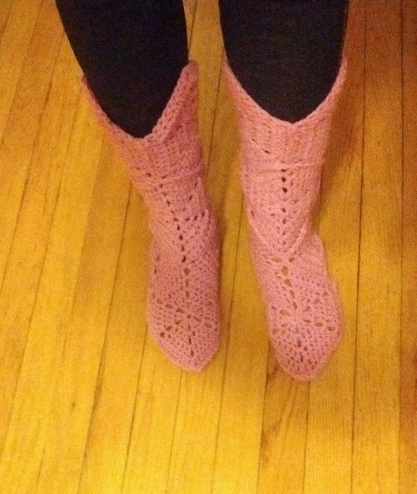 Hand crocheted booties for lounging around the house. Stylish, warm and comfy. Made with 100% acrylic yarn. Items are hand crocheted with care so they ship within 7 to14 days depending on order size.