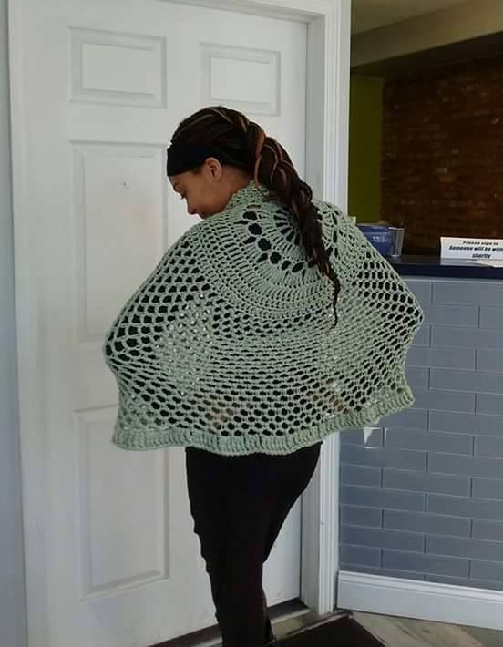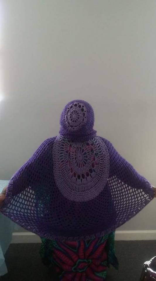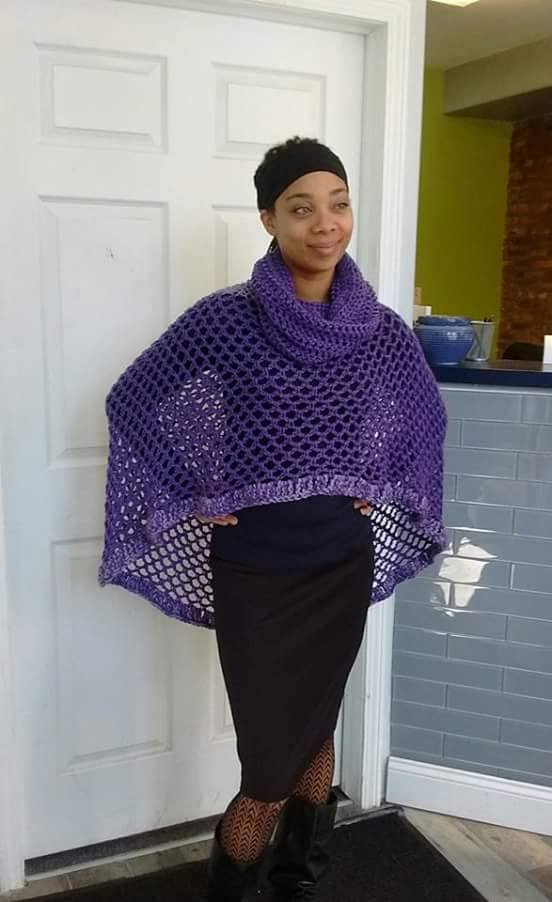 One size fits all 'Goddess Poncho'. Comes in many colors. 100% acrylic yarn. Extra for hooded cowl and two tone.